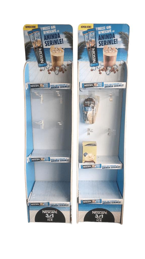 Farklı mağaza senaryolarına uygun zemin standı ve raf üstü teşhir ürünleri üretiyoruz.